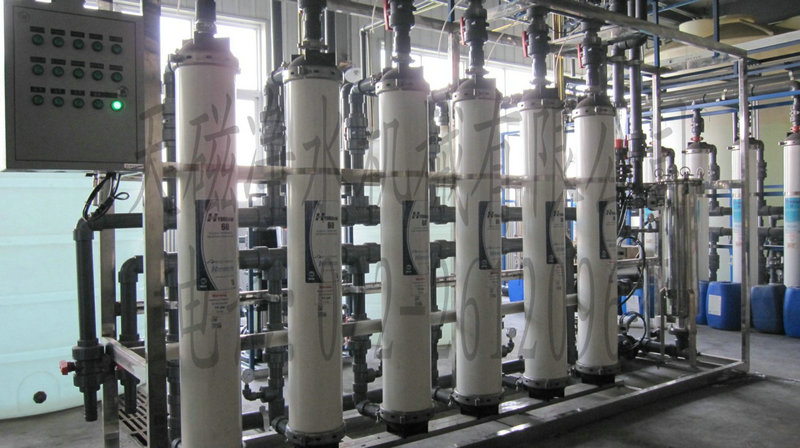 超滤是通过膜表面的细微孔径对水质进行选择性分离,当原水在增压泵的加压下,经过管道流经到超滤膜表面时,小分子如水、盐等溶质透过超滤膜,而大分子如泥沙、胶体、悬浮物、细菌、微粒、病毒等有害人体健康的被有效的截住。再通过超滤系统中定时正反冲洗功能,将这些有害大分子冲洗掉。同时本套超滤系统还设有杀菌剂加药系统,当系统运行时,加入2-3ppm的杀菌剂,如二氧化氯、次氯酸钠等,对超滤膜进行杀菌,去除残留在膜丝上的细菌和病毒。超滤是当今技术的前沿科技,其广泛应用于矿泉水、纯净水预处理、食品、制药、生物等领域。本套系统还具有独特的药洗功能,当超滤膜由于堵塞,造成产水量严重不足时,利用药洗装置对膜组进行药洗,使其恢复先前的产水效果。